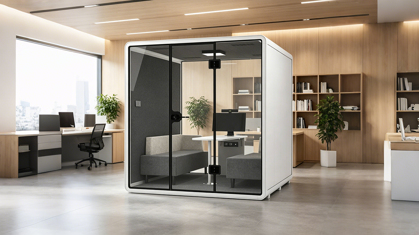 Modern offices use acoustic booths to create quiet zones for meetings and focused work.